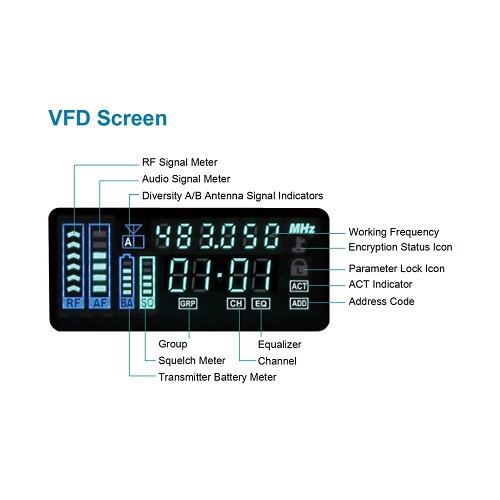 - New digital diversity receiving technology eliminates signal dropout and enhances receiving range.