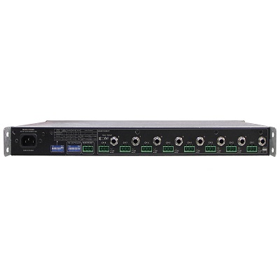 | Input Connections | 8 x Balanced Euroblock, 1 x Balanced TRS (AUX) |