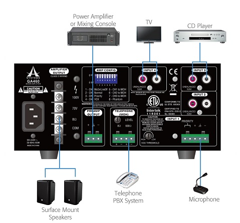 GA460 4-Channel Commercial 60 Watt Mixer/Amplifier