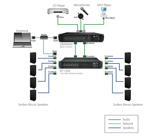 NT 1308 1040 Watt 8-Channel Network Amplifier with DSP Processing